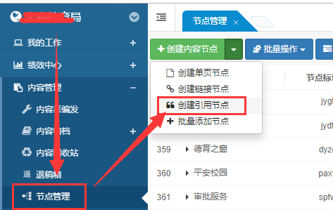 解决方案:【内容管理】-【节点管理】,左上角,创建引用节点;