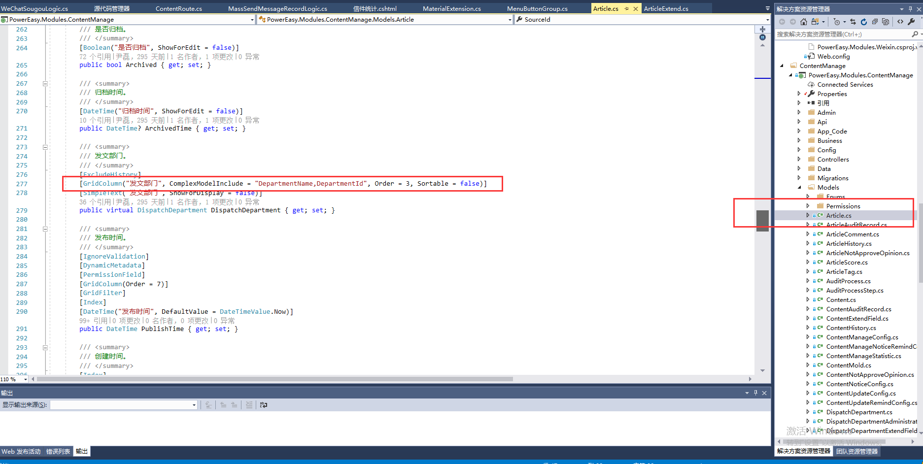 上图是源码中实体-Article的代码,可以找到属性上方GridColumn特性,代表的就是生产的表格列表的内容。