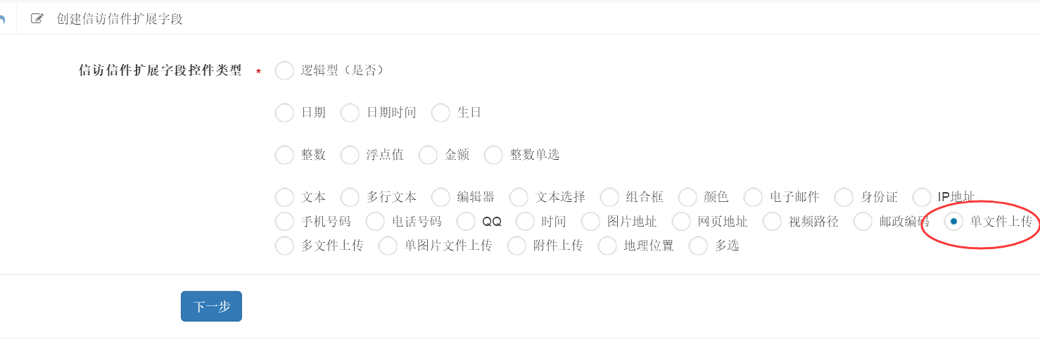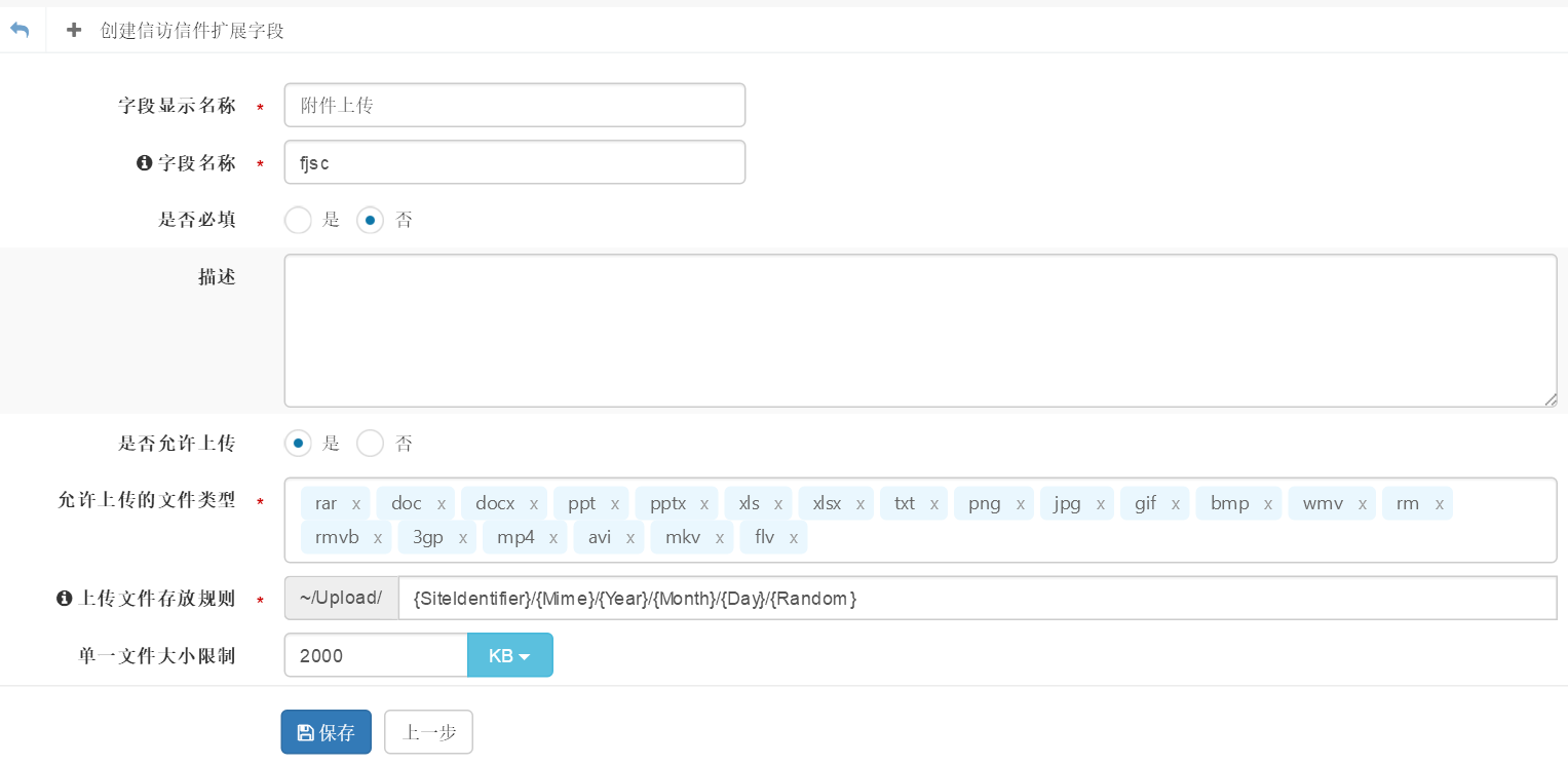 网民信访可能有时候需要进行上传附件,单单文字内容已经无法满足与实际使用,那么我们可以通过自定义字段来实现功能。