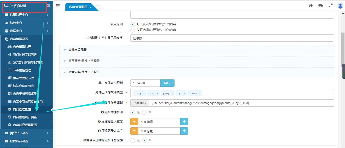 问题:如何修改默认上传的命名规则 解答:切换到平台管理--内容管理配置--点击需要修改的上传位置--点击上传文件规则--修改