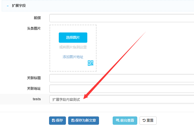 我们在后台添加好扩展字段的测试数据,点击保存。