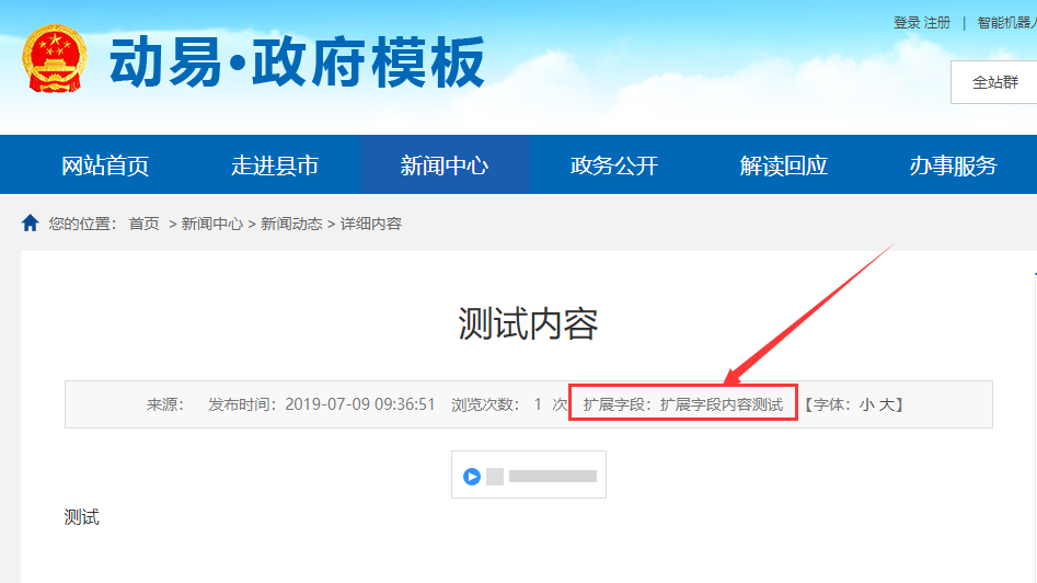 不仅内容管理模型,信息公开模型的扩展字段都可以通过@Model.ExtendObject.字段名称实现前台输出。