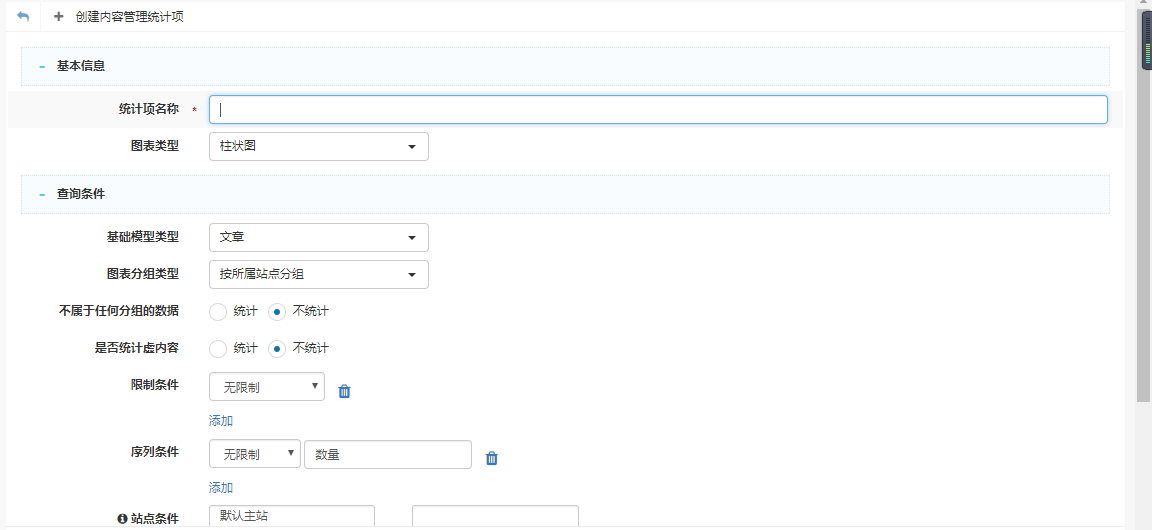 1,创建内容统计管理统计项,填写条件