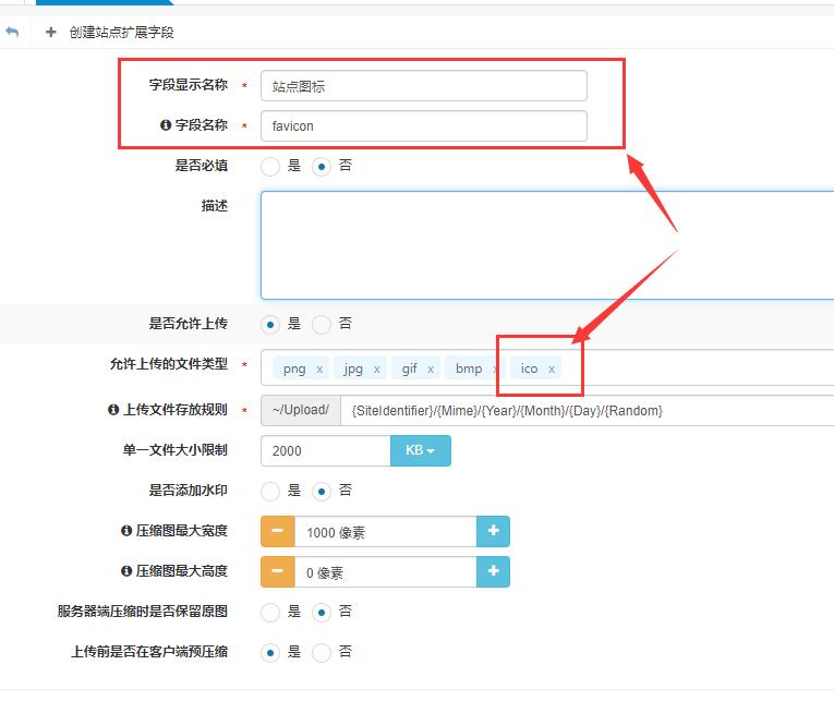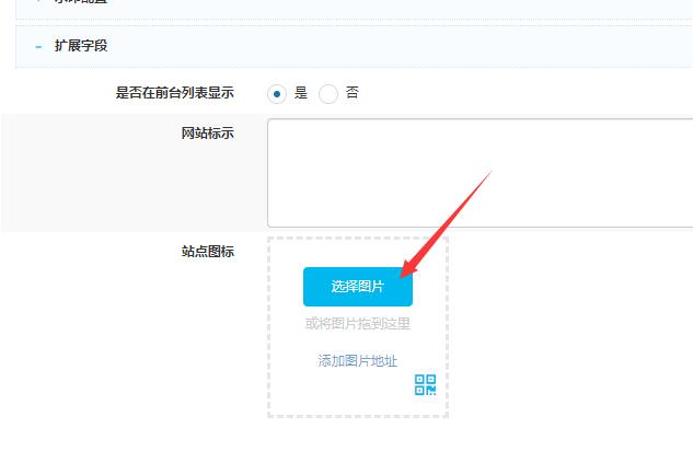 后台 -- 平台管理 -- 站点管理 -- 站点扩展字段管理 -- 创建站点扩展字段 -- 选择“单图片文件上传”