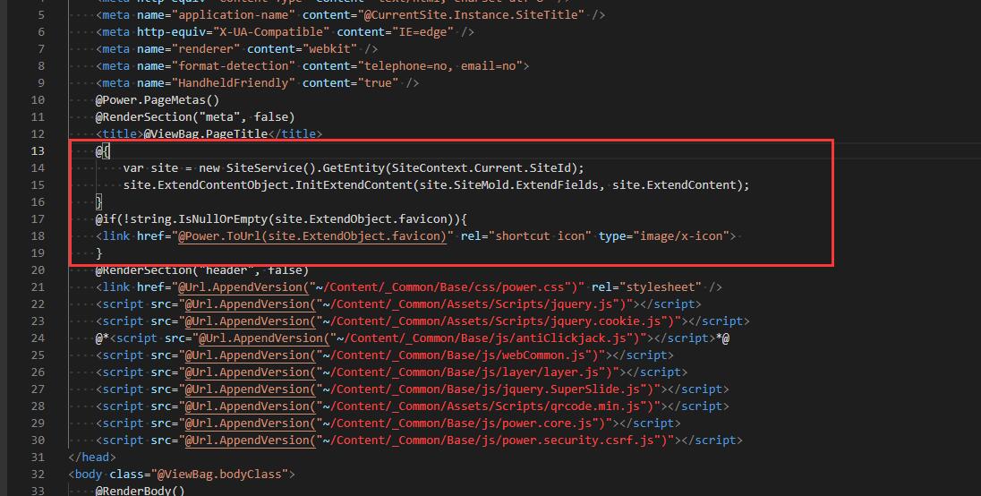 - <linkhref="@Power.ToUrl(site.ExtendObject.favicon)"rel="shortcut icon"type="image/x-icon">