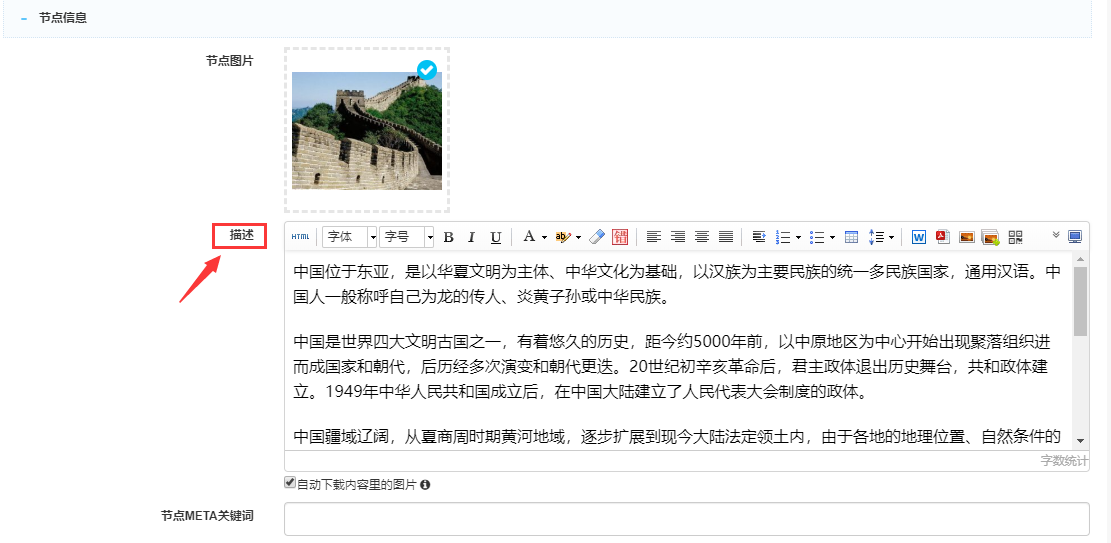问题描述:某些一级内容节点下没有文章,需要显示该节点的简介。