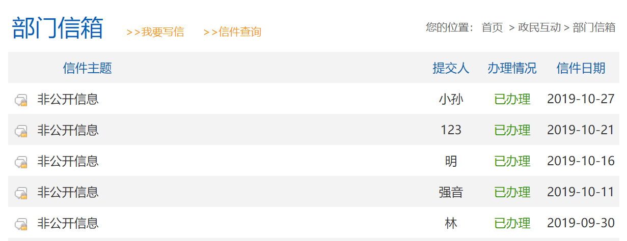 设置完之后,咨询列表页会把非公开信息的信件都列出来,如下图: