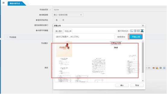节点信息描述中点击多图上传,选择所有图片文件上传