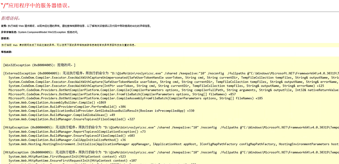 问题分析:检查时发现bin目录有执行权限,csc.exe却没有执行权限,而且csc.exe是继承父文件夹权限的。