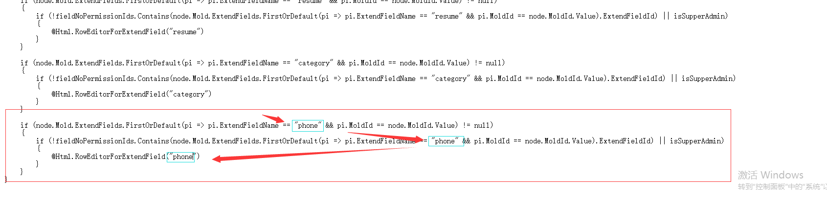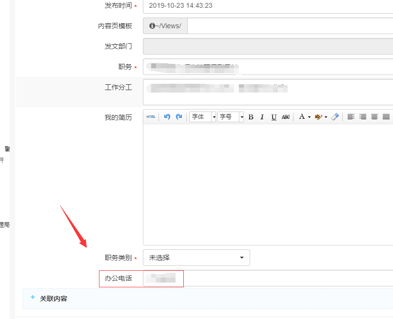 把刚刚新增“办公电话”字段如图加上去,蓝圈圈住的地方是替换上刚刚填上的字段名称,红圈圈住地方复制上面的扩展字段即可