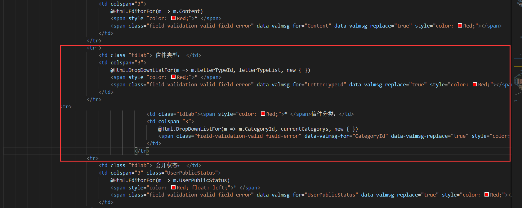 后台配置关闭对应的友好提示页,通过黄屏报错,发现模板信件类型部分代码丢失,如下图:
