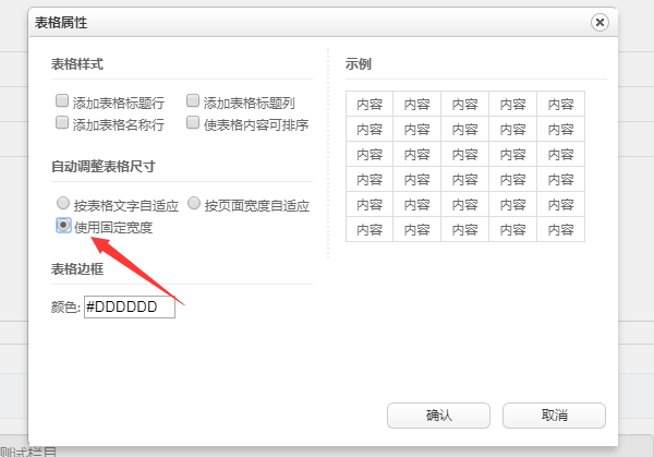 “自动调整表格”尺寸,选择“使用固定宽度”保存即可。