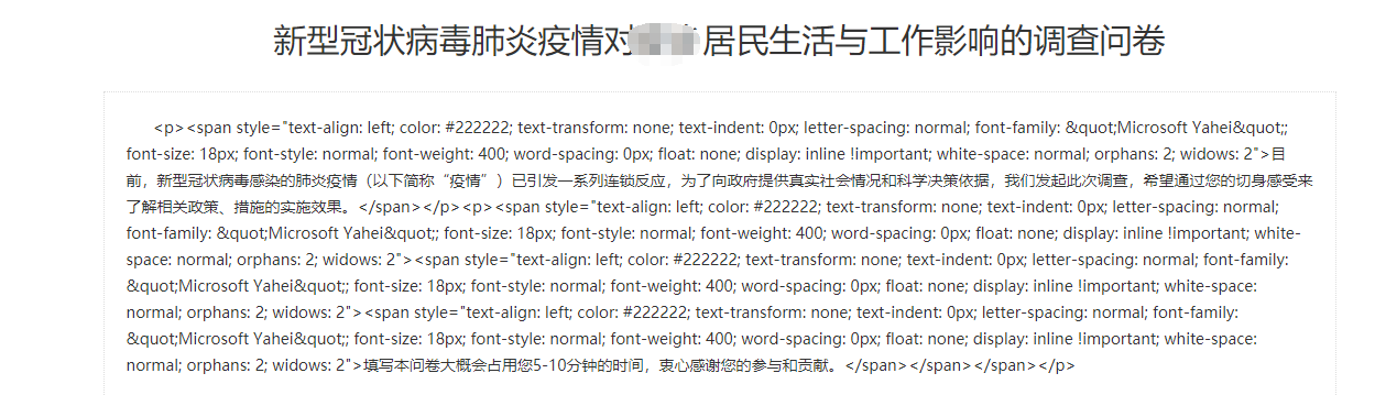 问题描述:前台关于问卷调查描述乱码,一些html代码也直接显示出来了。
