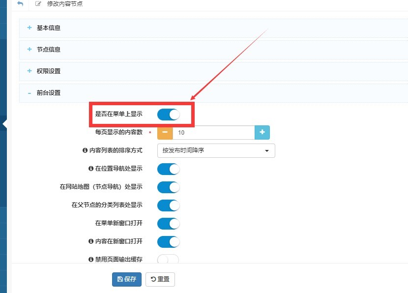 解决方案:在模板无问题的情况下,往往是添加友情链接的时候,【前台设置】中的【是否在菜单上显示】这个开关没有打开所致。