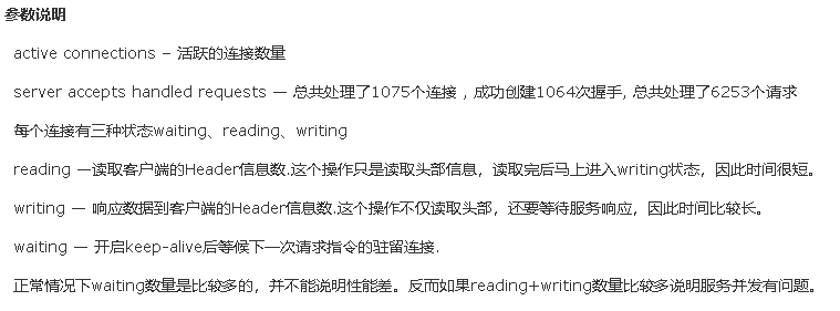 然后在浏览器上输入127.0.0.1/status;如果有专门的Zabbix服务器,allow IP地址改成Zabbix服务器的地址即可;