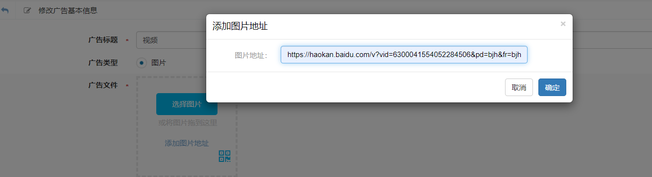 4.创建广告基本信息(添加视频地址或选择本地视频)