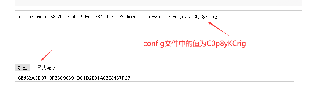 administrator.AdministratorName + administrator.AdministratorPassword + administrator.Email + administrator.MobileNumber + administrator.WeixinUserOpenId + Security.config中的AdministratorPasswordHashCode(此处为C0p8yKCrig)