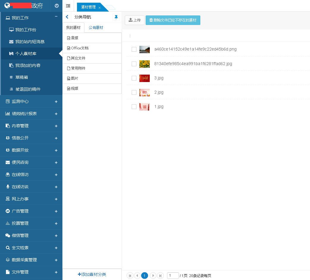 1.在我的工作--个人素材库下面,添加素材分类(如果没有选择分类,上传按钮是灰色不可点击的);