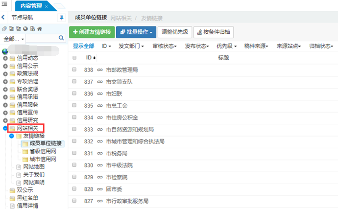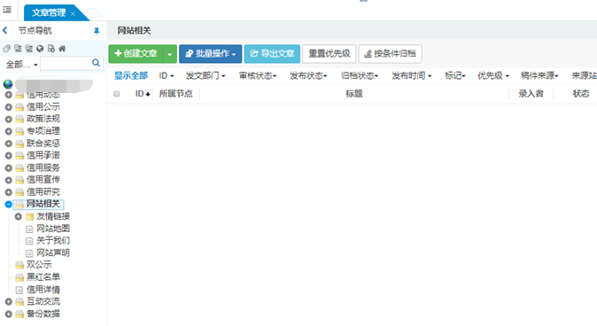 如下图:点击“网站相关”栏目,不显示“友情链接”栏目里的内容。