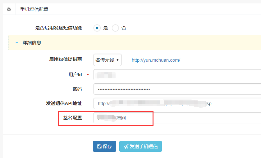 但我们的2.1版本的产品手机短信配置中没有签名配置这个选项,怎么办?