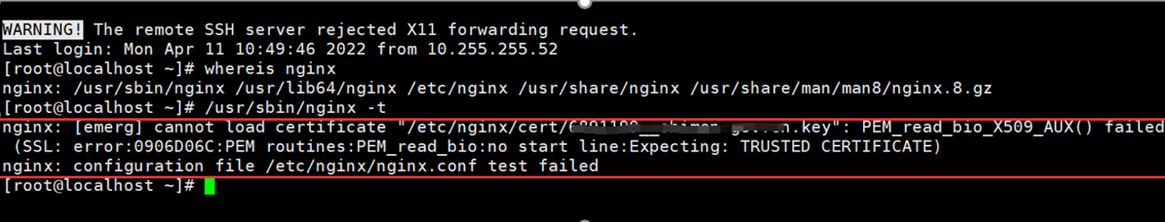 问题描述:nginx更换ssl证书后,报错如下: