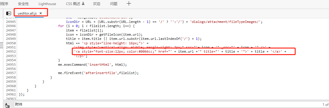 解决方案:修改Admin/Content/Assets/UEditor/ueditor.all.js,在下图位置加上
