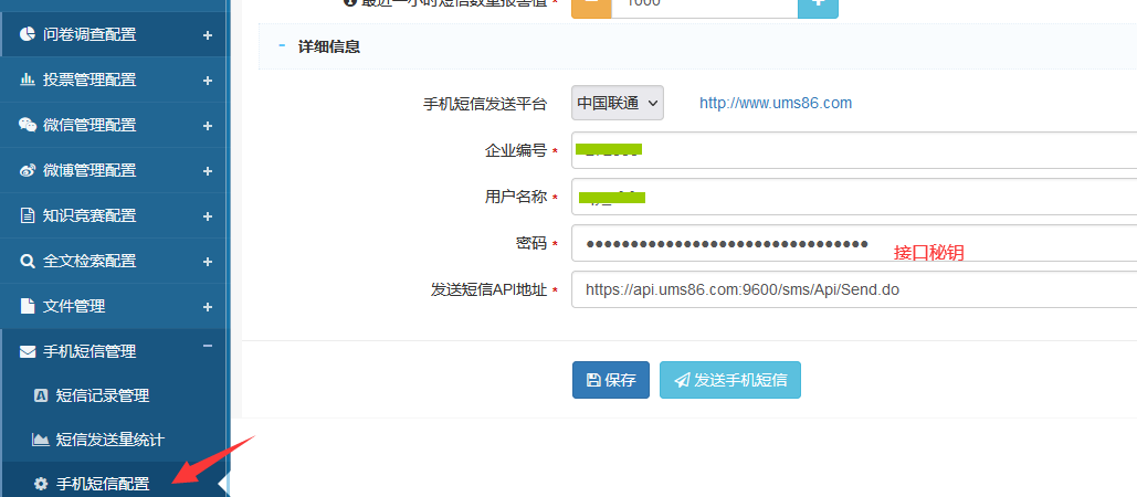3.网站后台短信接口配置;