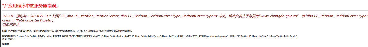 问题分析及解决:主外键冲突, PetitionLetterypeId是不能为null的说明模板上面并没有传递数据到后台导致报错