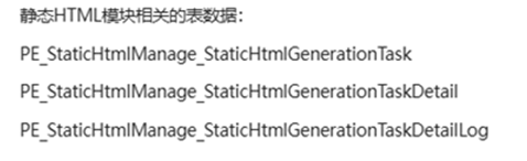 PE_StaticHtmlManage_StaticHtmlGenerationTaskDetailLog 这个日志表可以直接用TRUNCATE TABLE来清空处理