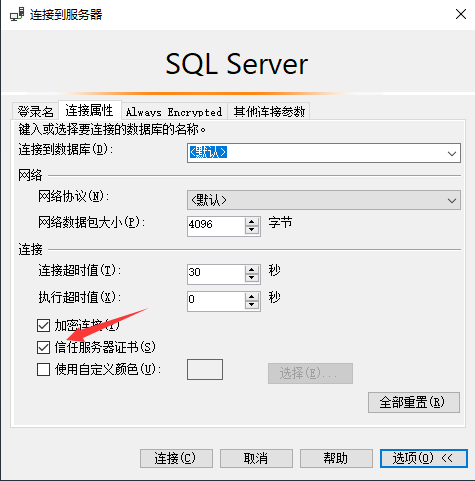 问题解决:直接在“数据库连接字符串最后面”增加证书信任的配置。;TrustServerCertificate=true