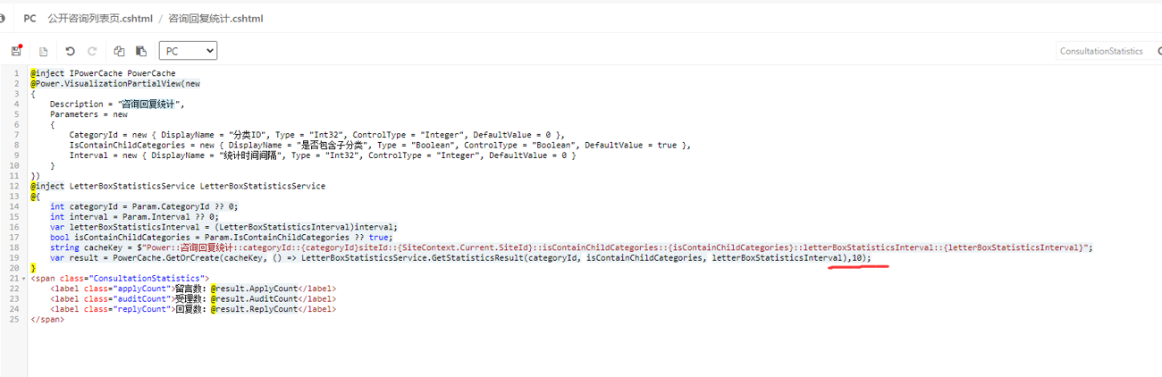 便民咨询列表页的咨询回复统计,默认是带缓存,一天一更新。