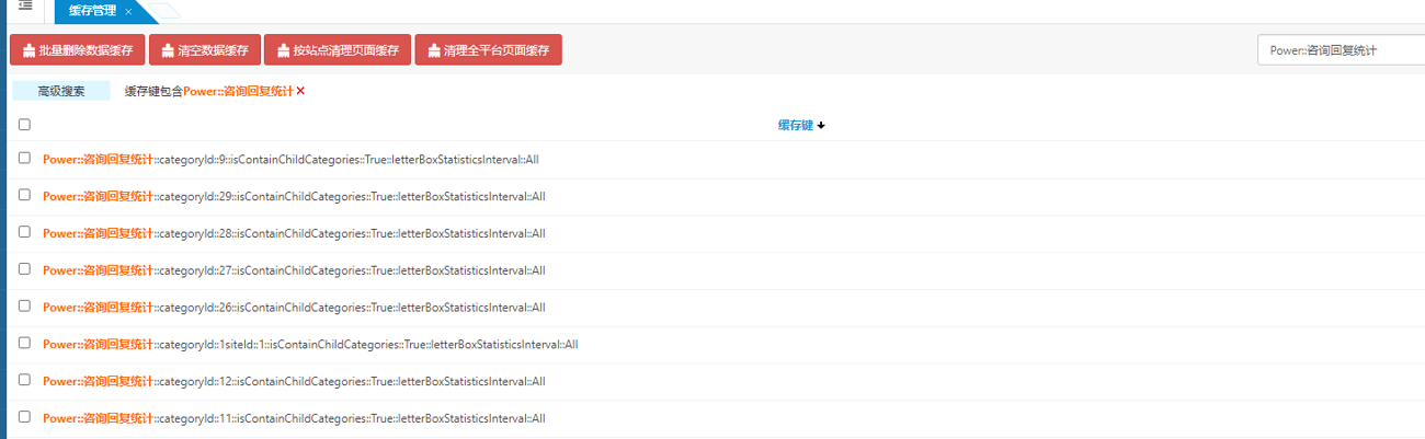 手动清理该数据缓存:在运维中心数据缓存中搜索“Power::咨询回复统计”并删除对应的分类