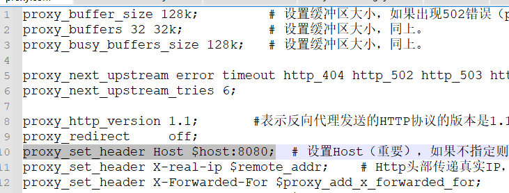 1.把nginx下proxy.conf文件中添加proxy_set_header Host $host:8080;