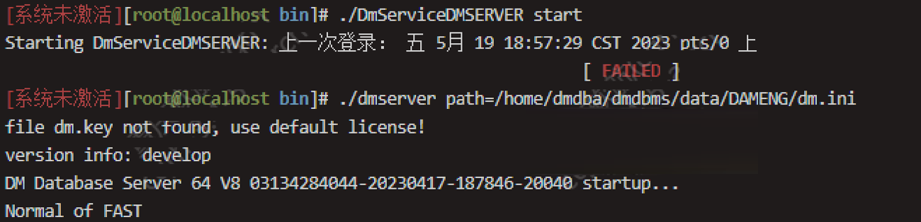可以看到当把data目录属组改为dmdba dinstall之后,服务就可以正常启动了。