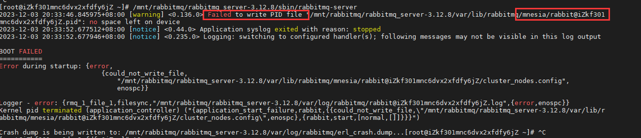 rabbitmq启动Failed to write pid file:/var/lib/rabbitmq/mnesia/