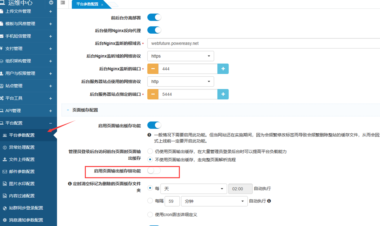 问题分析:网站异常日志提示“句柄无效”的问题,如下图: 解决办法:切换运维中心,平台参数配置,关闭页面输出缓存锁配置即可,如下图:
