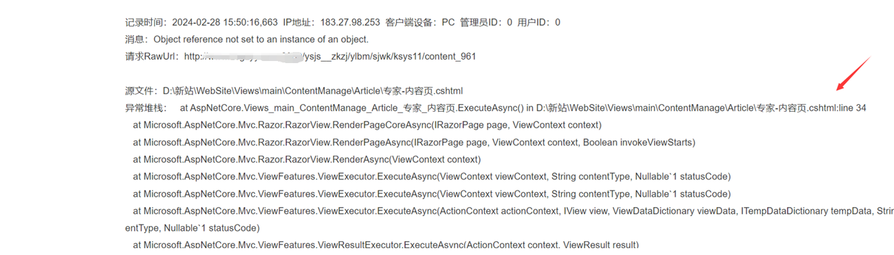 问题分析:访问专家内容页访问提示404的问题,查看对应的异常日志,提示如下图: