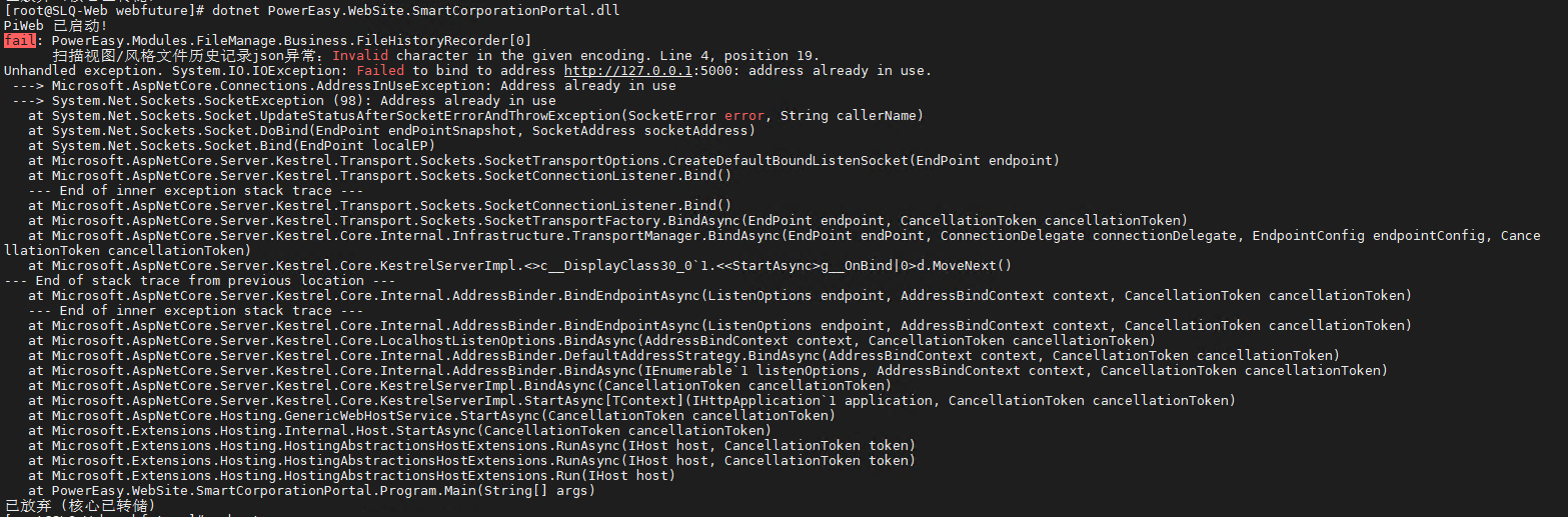 fail: PowerEasy.Modules.FileManage.Business.FileHistoryRecorder[0] 扫描视图/风格文件历史记录json异常:Invalid character in the given encoding. Line 4, position 19.