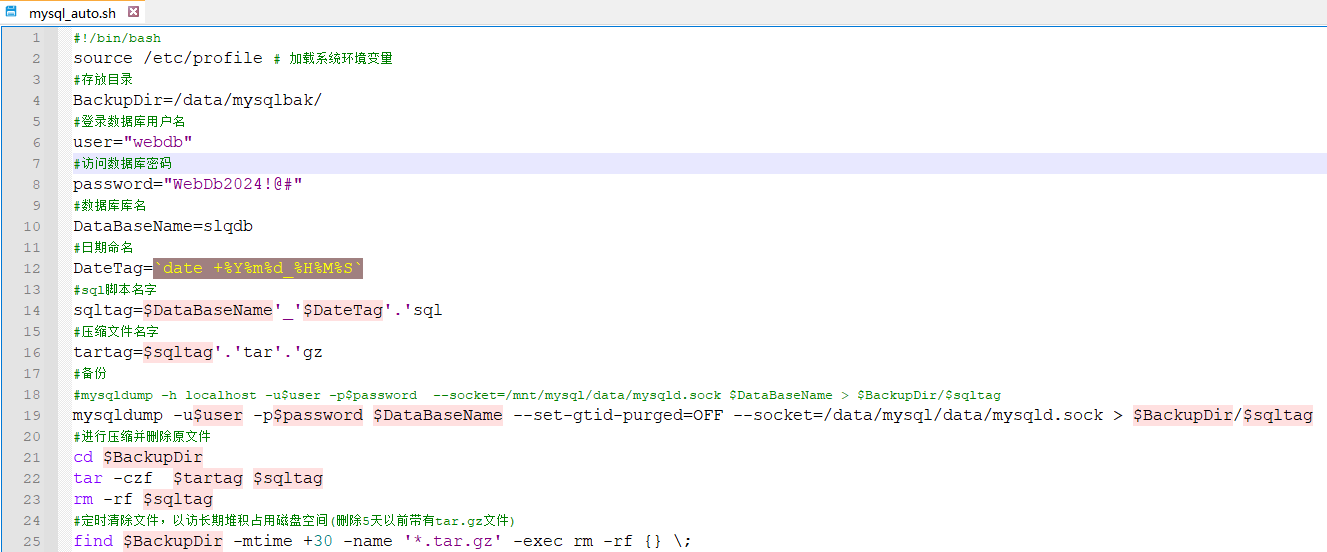 脚本会执行mysqldump备份,并将sql文件压缩为tar.gz,清理超过30天的文件。