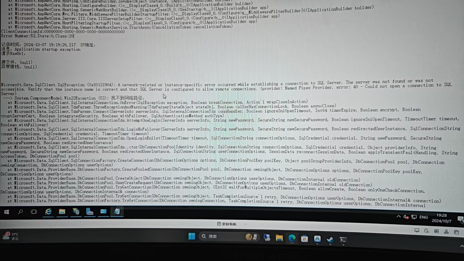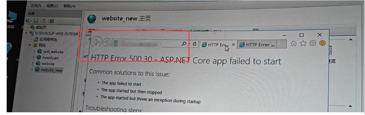 问题分析:进入iis发现网站服务是正常运行的说明iis服务没问题,查看网站文件下的日志文件发现如下错误: