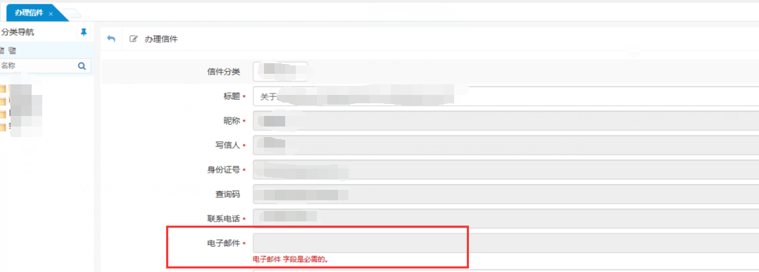 问题描述:如何取消后台信件办理时的邮箱必填项?