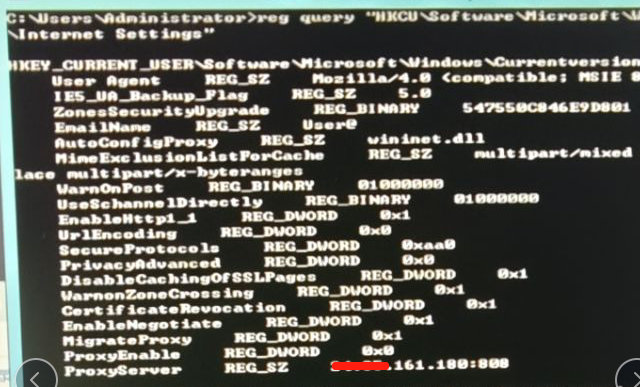 ProxyEnable REG_DWORD 0x1 ProxyServer REG_SZ 24.xx.xx.180:808