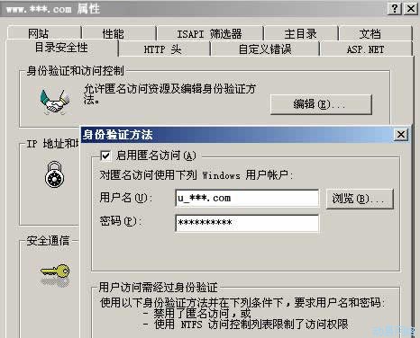 (6)设置iis匿名用户访问权限为刚刚我们新建的u_***.com用户。