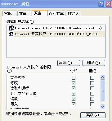 现在的网站目录大多是在NTFS分区,这样还需要对NTFS 分区上的这个目录的文件夹设置相应权限,许多地方都介绍设置使用everyone的权限来达到控制访问权限,实际上这是不好的。其实只要设置好Internet来宾账号(IUSR_xxxxxxx)或IIS_WPG 组的账号权限就可以了。如果是设置 ASP、PHP 程序的目录权限,那么只需要设置Internet 来宾账号的权限,而对于ASP.NET 程序,则需要设置 IIS_WPG 组的账号权限。