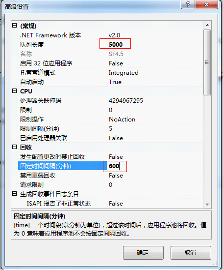 优化队列长度,提高并发链接支持,缩短应用池回收时间间隔
