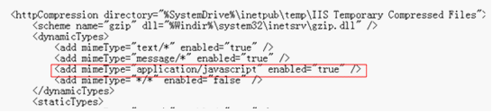 然后对application/x-javascript进行动态压缩,对application/javascript进行静态压缩,需要配置C:WindowsSystem32inetsrvconfigapplicationHost.config,如图