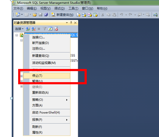 3、下一步要把sqlserver2012源文件复制到另外一个电脑上。由于SqlServer正在运行是无法复制的。所以首先要停止sqlserver服务。
