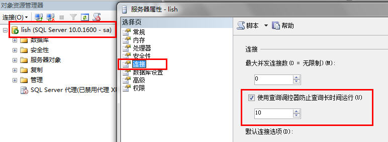 选中或清除“使用查询调控器防止查询长时间运行”复选框。
