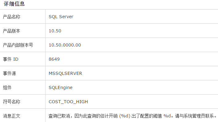 分析:其实这个错误已经非常明显的告诉了用户,查询的开销比数据库默认设置的小才造成的该错误。