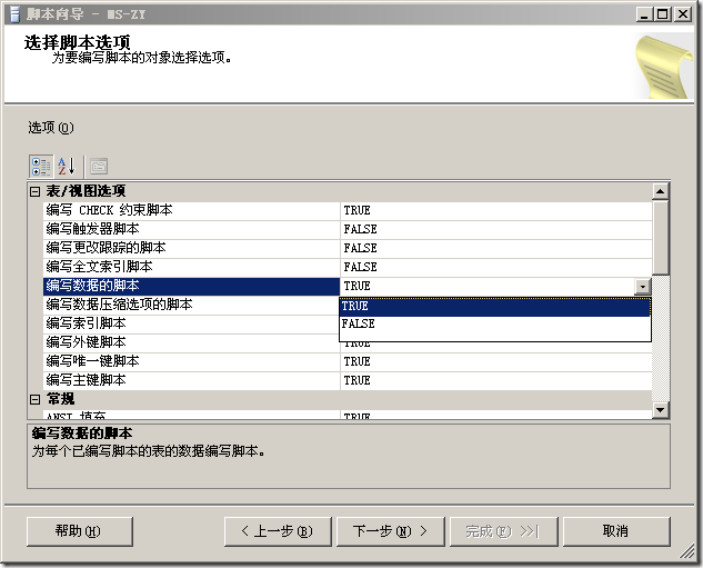 如果找不到 要编写脚本的数据的类型 ,可以看下图,sql2008(有多个版本),把编写数据的脚本设置为TRUE即可